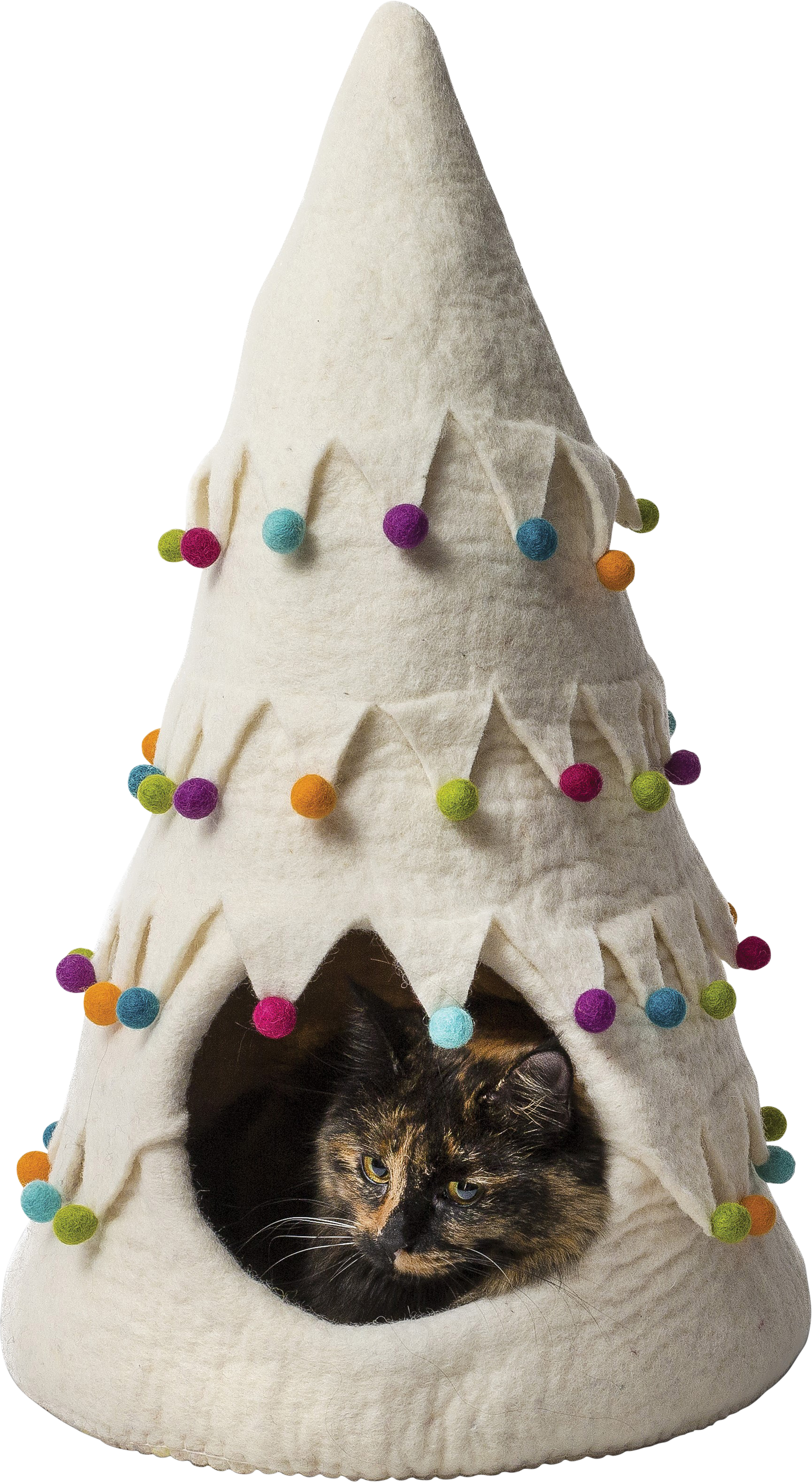 Dharma Karma - DDKC Höhle Weihnachtsbaum Weiss: Kuscheliger Rückzugsort für Katzen und kleine Hunde