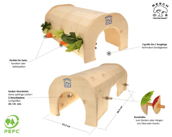 Beschreibung Heimtierbedarf Resch – Futtertunnel Nager aus massivem Fichtenholz, fertig montiert