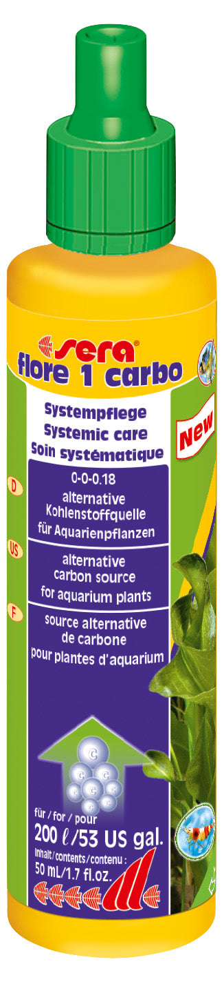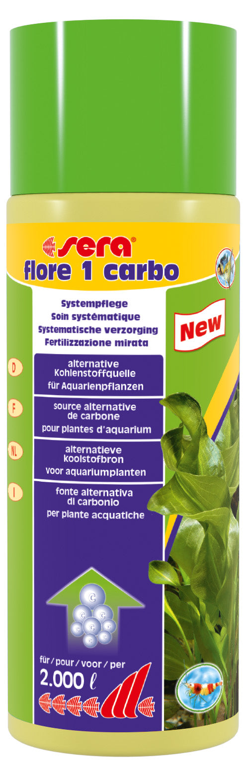 sera flore 1 carbo wird als Flüssigdünger ins Aquariumwasser dosiert und unterstützt die Pflanzen optimal bei der Fotosynthese, besonders wenn CO2 nur eingeschränkt vorhanden ist.