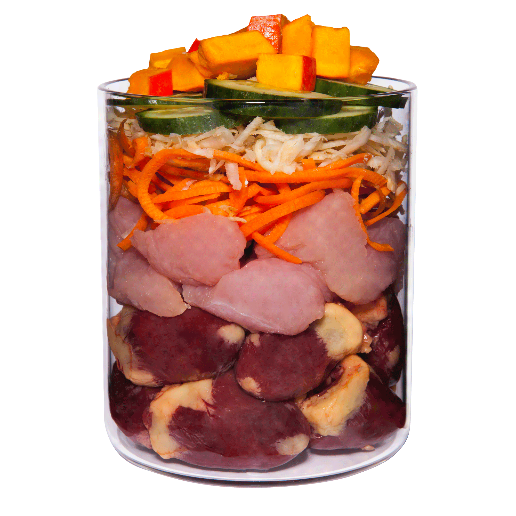 Hoher Fleischanteil (64 %) aus Putenherz und Putenmuskelfleisch