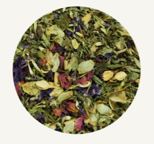 Enthält Haferstroh grün, Melissenblätter, Rosenblüten und Jasminblüten
