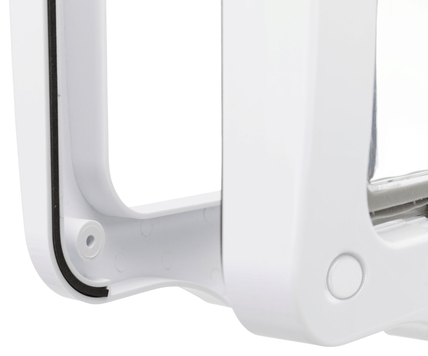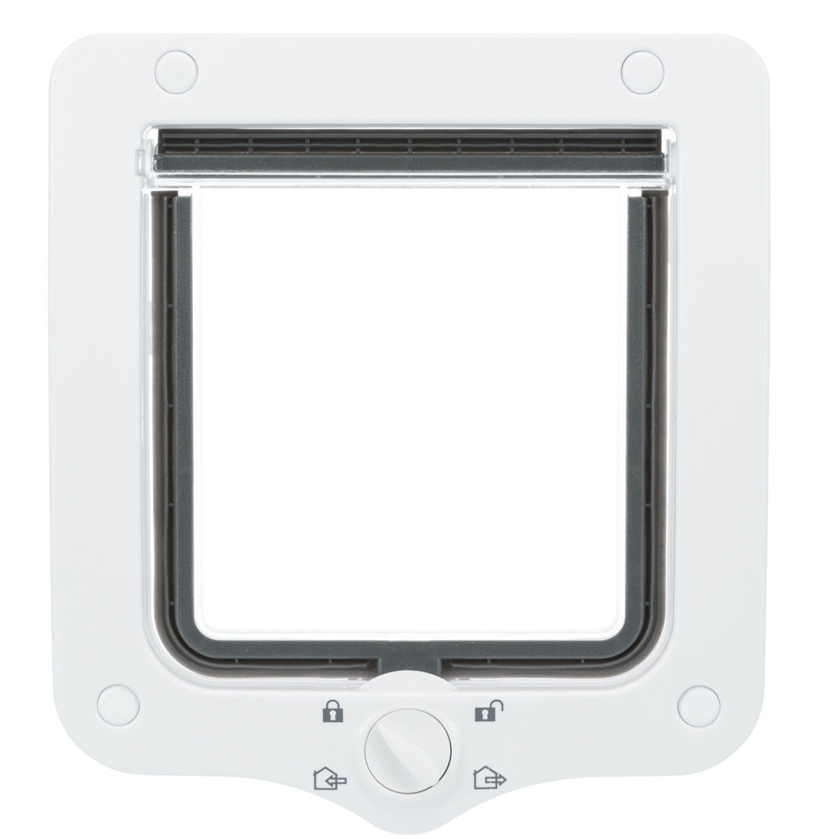 Beschreibung Trixie 4-Wege Freilauftür weiss – Geräuscharme Katzentür mit Drehverschluss