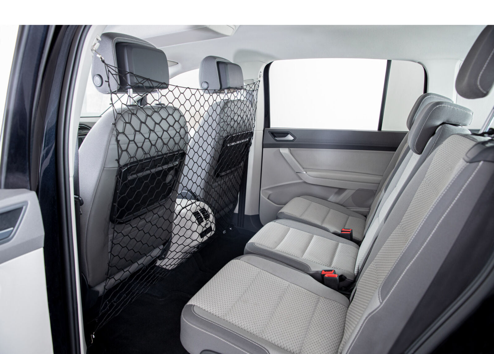 Das Schutznetz wird zwischen Rück- und Vordersitzen angebracht und mit den Befestigungspunkten im Fahrzeug verbunden. Dadurch bleibt dein Hund sicher im hinteren Bereich des Autos und wird am Vordringen auf die Vordersitze gehindert. Ideal für eine ruhige und sichere Autofahrt.