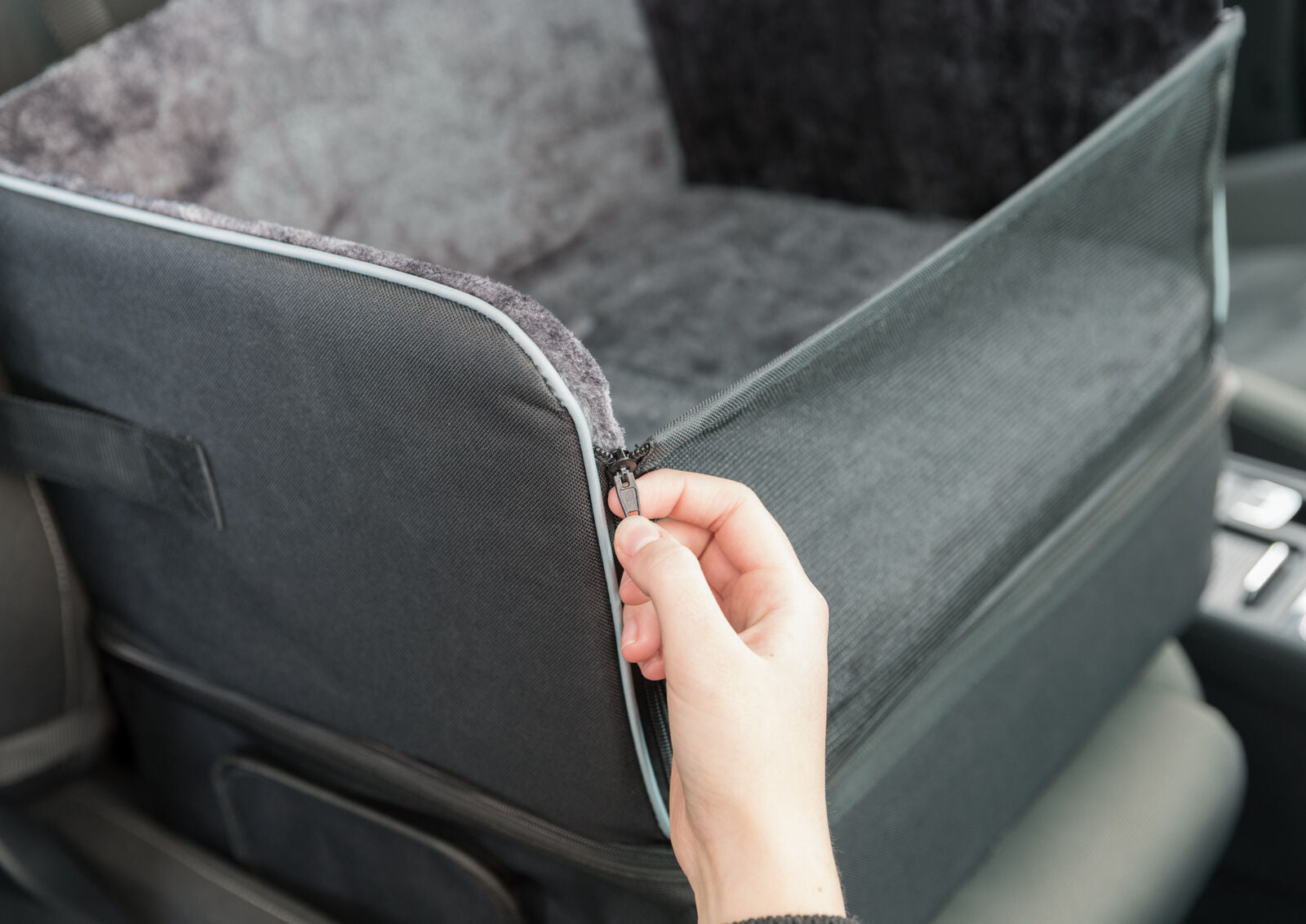 Der Autositz wird auf dem Fahrzeugsitz befestigt und bietet Ihrem kleinen Hund einen sicheren und erhöhten Platz während der Fahrt. Die Befestigungsgurte sorgen dafür, dass der Sitz fest an Ort und Stelle bleibt. So genießen Sie und Ihr Hund entspannte und sichere Autofahrten.