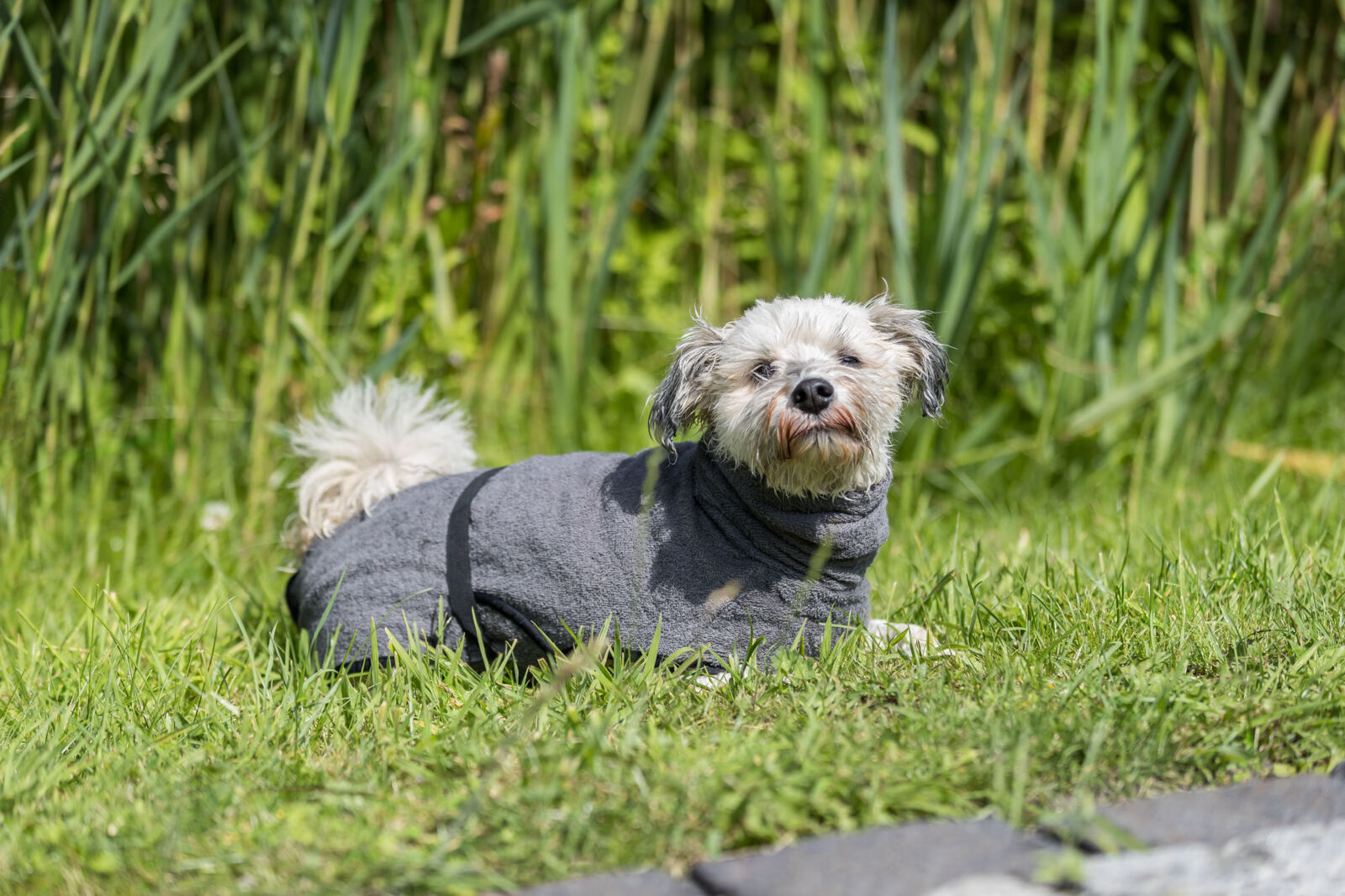 Dem Hund nach dem Baden oder bei Nässe anziehen, um ihn schnell zu trocknen und vor Zugluft zu schützen. Nach Gebrauch zum Trocknen aufhängen und bei Bedarf waschen.