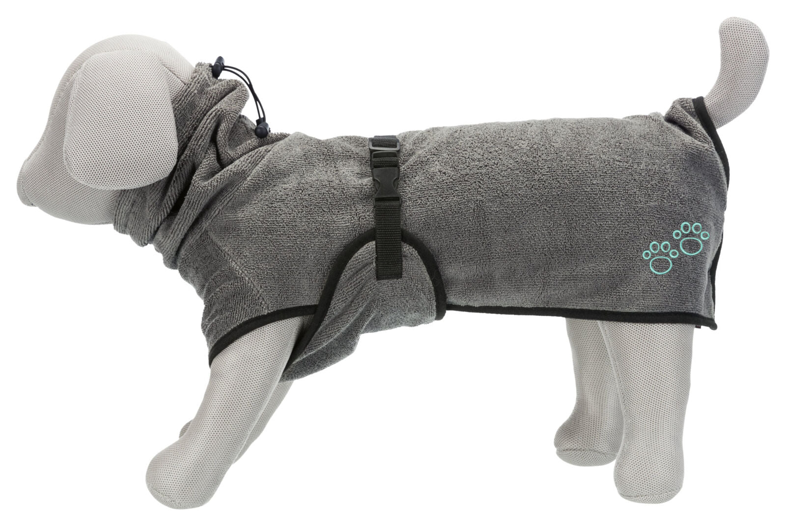 Trixie Bademantel für Hunde – Weiches Frottee für schnelles Trocknen, grau