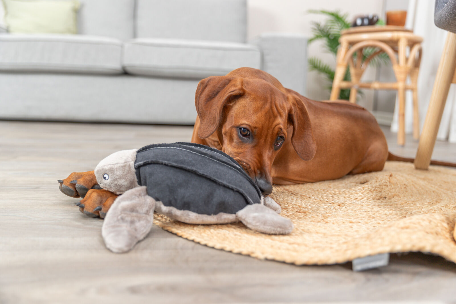 Ideal zum Kuscheln, Tragen und leichten Kauen. Die Schildkröte Hauke sorgt für Beschäftigung und Freude bei Hunden aller Grössen.