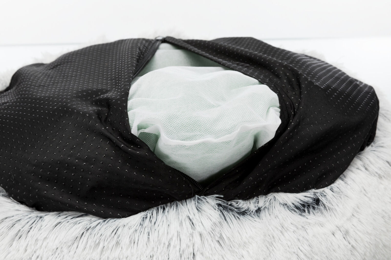 Das Trixie Bett Harvey aus der SOFT Edition besticht durch seinen weichen Langhaar-Plüsch in klassischem Weiss und Schwarz. Die komfortable Polyestervlies-Füllung sorgt zusammen mit dem fest integrierten Kissen für einen gemütlichen und unterstützenden Liegeplatz. Der abnehmbare Polyester-Bezug ermöglicht eine einfache Reinigung, während der rutschfeste Boden für sicheren Halt auf allen Böden sorgt. Ideal für kleine bis mittelgrosse Hunde, die Komfort und Stil lieben.