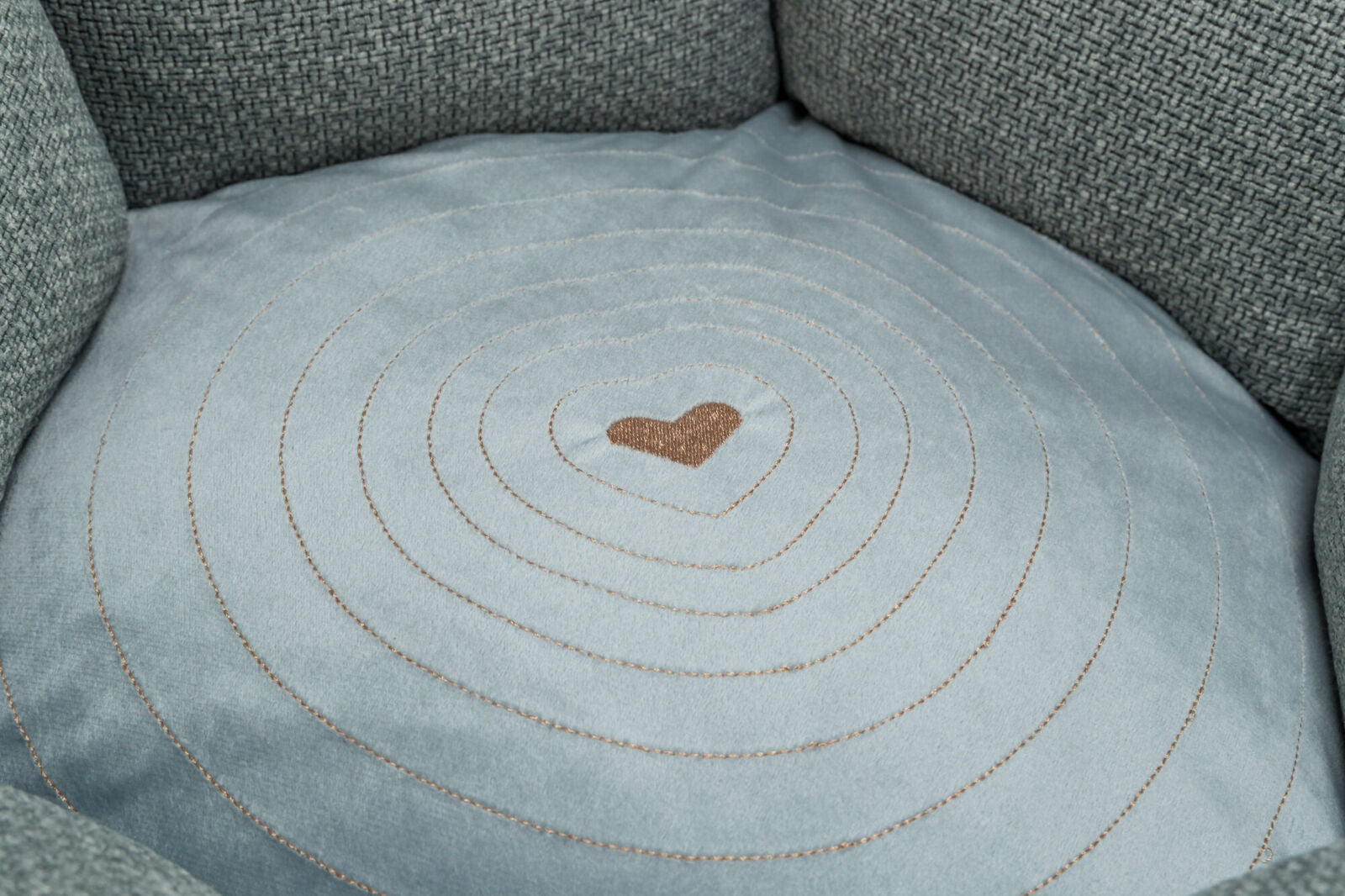 Beschreibung Trixie - Bett Viviana, rund, blau-grau – Komfortables Rundbett mit Samt-Haptik und Stickerei