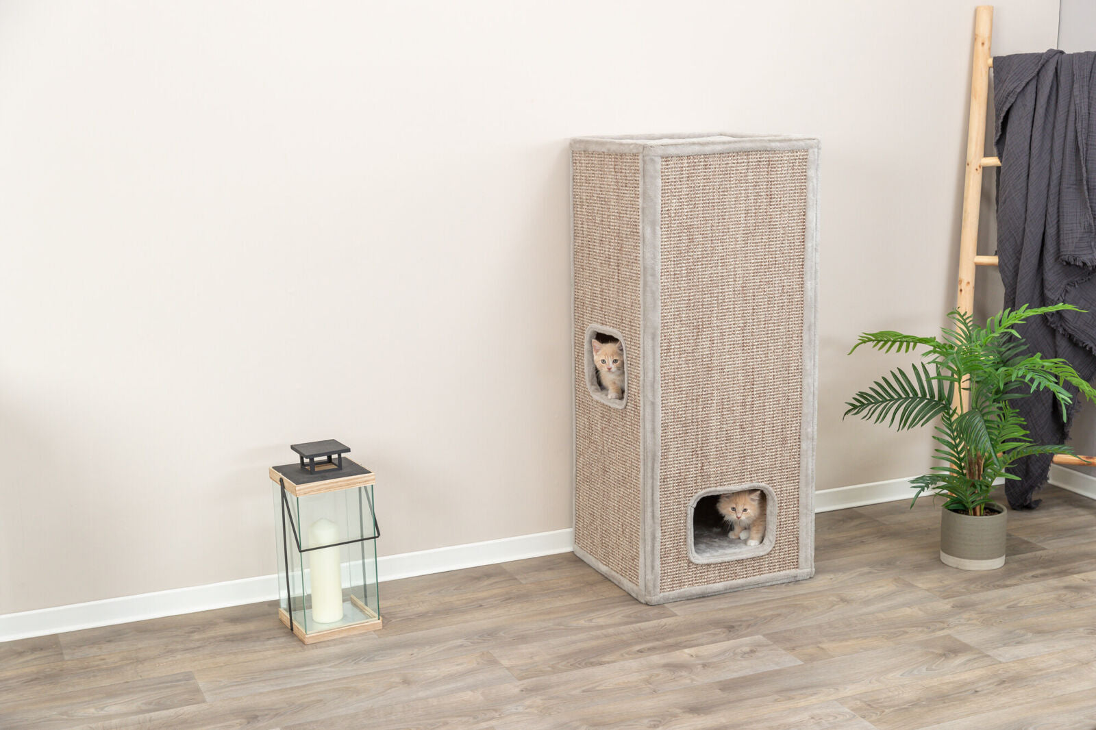 Trixie - Cat Tower Juno, grau – vielseitige Kratztonne mit Sisalkratzflächen und kuscheligem Wendekissen