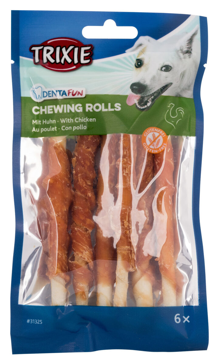 Beschreibung Trixie – Denta Fun Kaurollen mit Huhn – schmackhafte Kaurollen aus Rinderhaut mit Hühnerfleisch