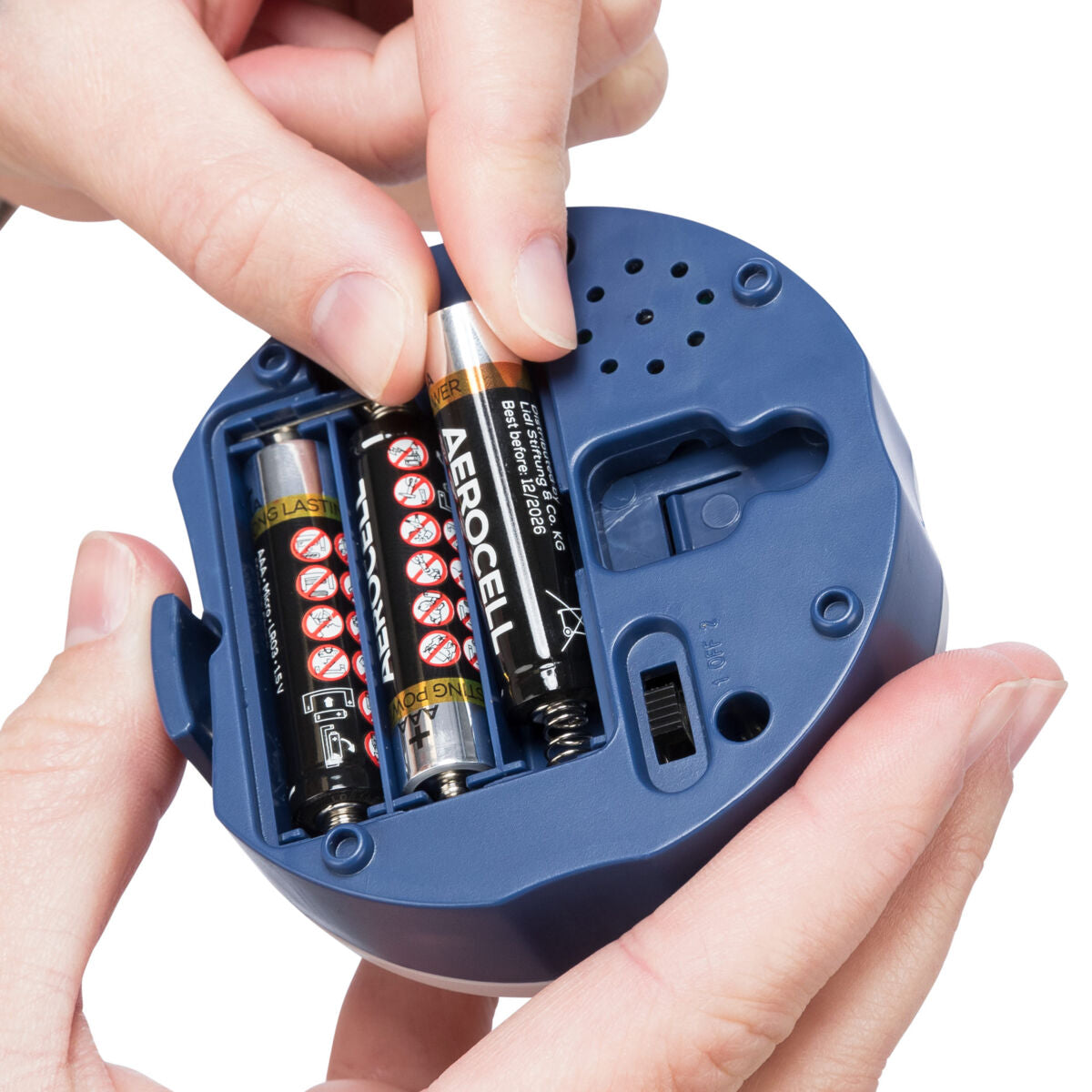 Betrieb mit Batterien oder USB-Netzteil (Batterien nicht enthalten)
