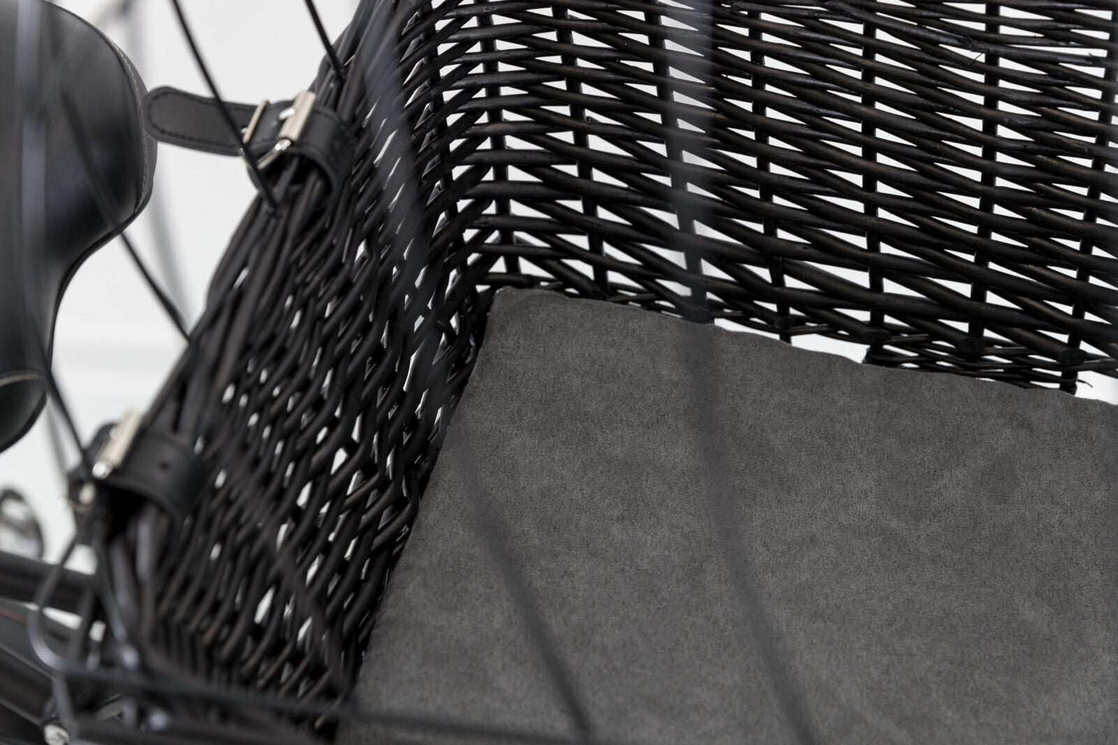 Der Fahrradkorb wird sicher auf dem Gepäckträger montiert und mit dem mitgelieferten Gitter verschlossen. Der Hund sitzt geschützt im Korb und kann die Fahrt bequem geniessen – ideal für Alltag und Freizeit.