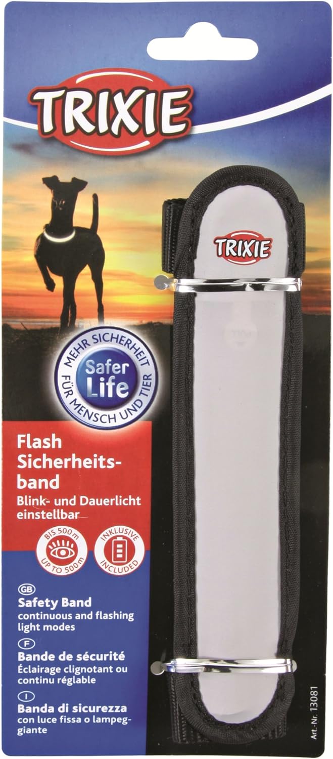 Beschreibung Trixie Flash Sicherheitsband – LED-Leuchtband für Hunde, grau/schwarz, 16 cm