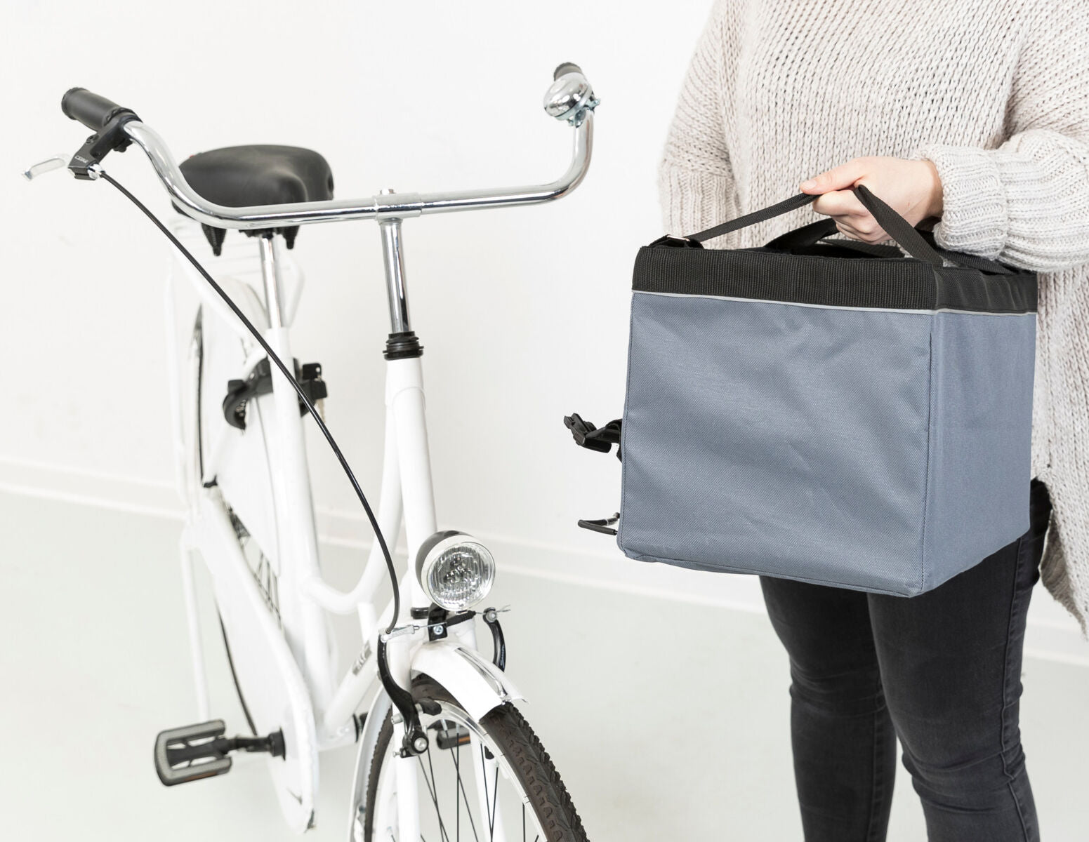 Beschreibung Trixie – Front-Box für Fahrräder, grau: Sicherer Fahrradtransport für kleine Hunde