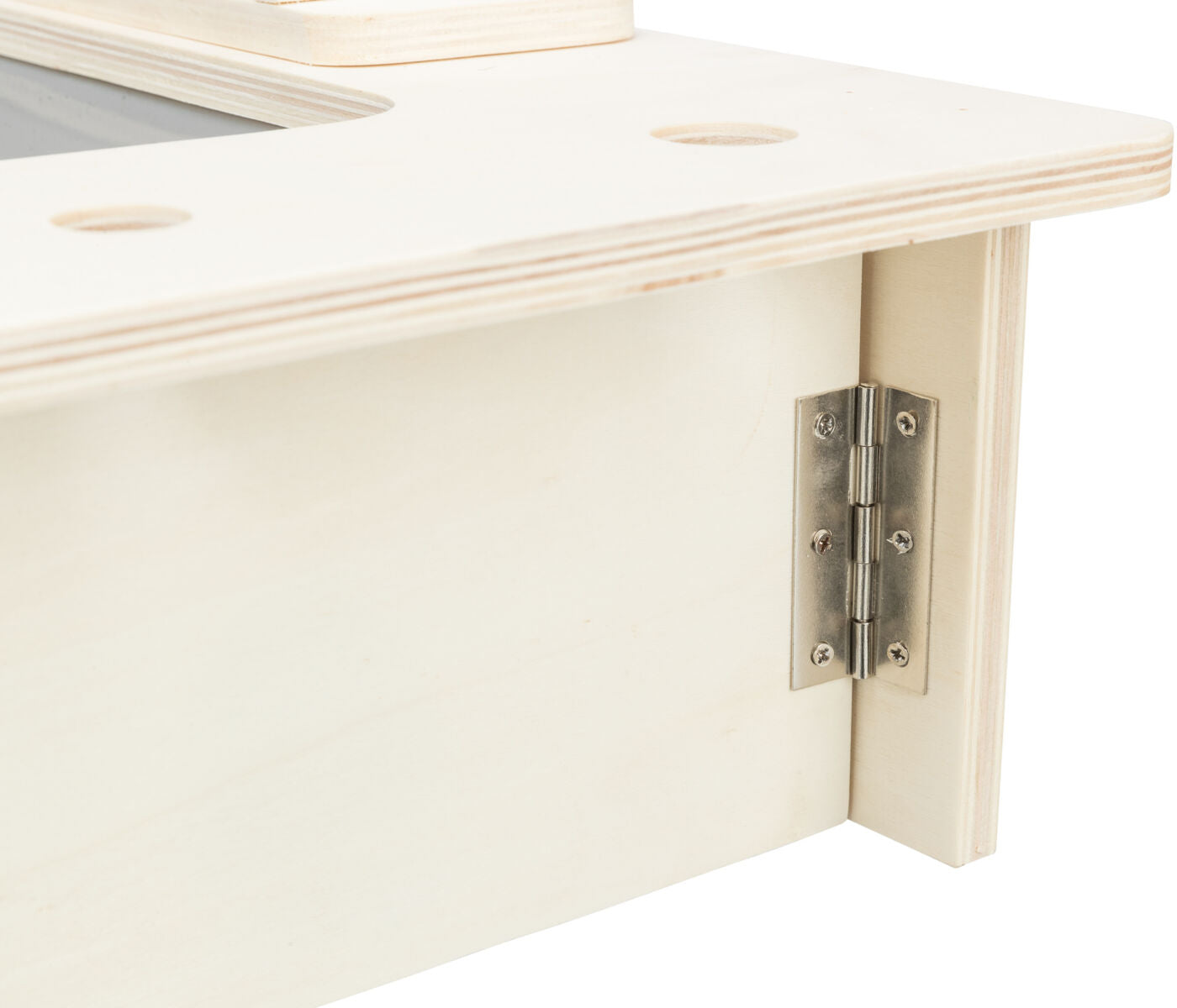 Beschreibung Trixie – Futterstation mit Näpfen und Heuraufe aus Holz: Praktische Futterstelle für Nagetiere