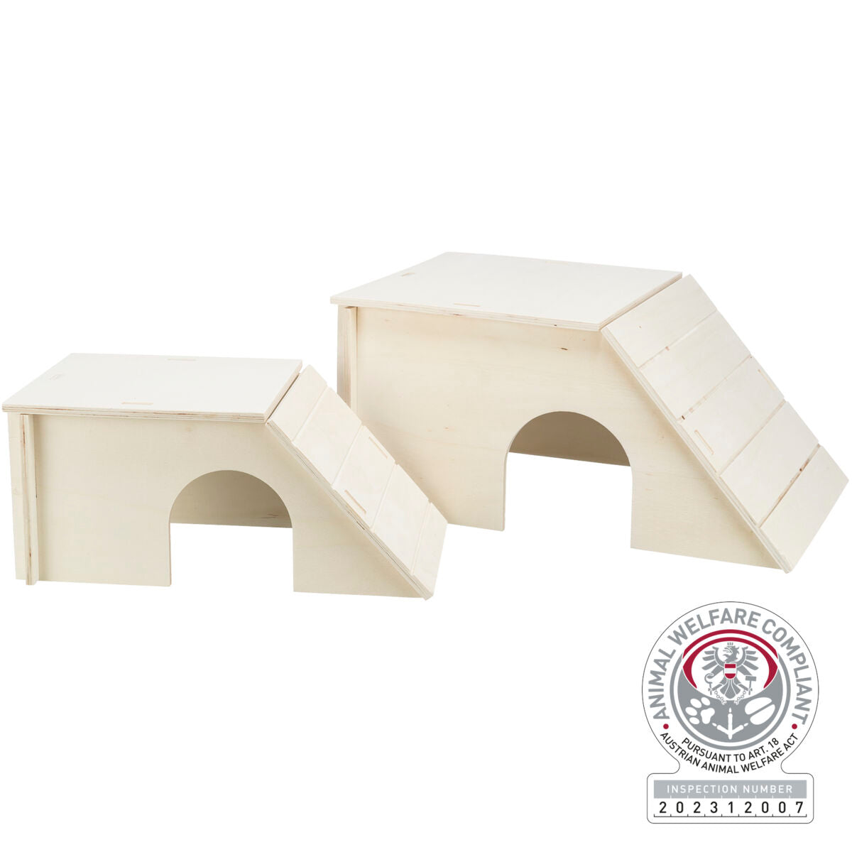 Beschreibung Trixie – Haus Bent: Einfaches Stecksystem-Nagerhaus aus unbehandeltem Holz
