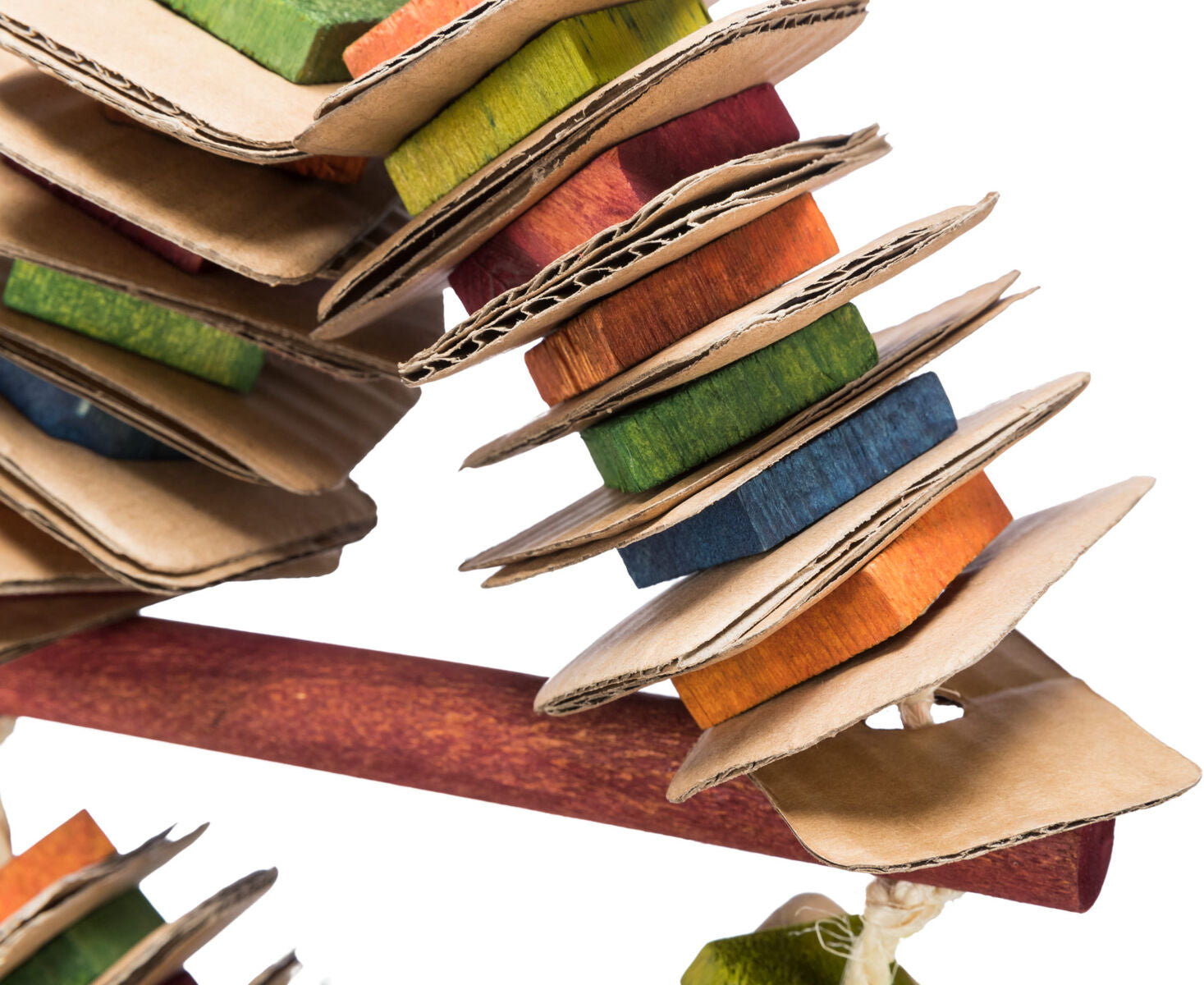 Das Trixie Holzspielzeug mit Pappe kombiniert robuste Holzklötze mit Pappe und bietet Vögeln abwechslungsreiche Beschäftigungsmöglichkeiten. Es regt zum Klettern, Knabbern und Spielen an und unterstützt so eine artgerechte Haltung. Dieses Spielzeug ist vom Weltvogelpark Walsrode empfohlen und steht für Qualität und Sicherheit im Bereich Vogelspielzeug.
