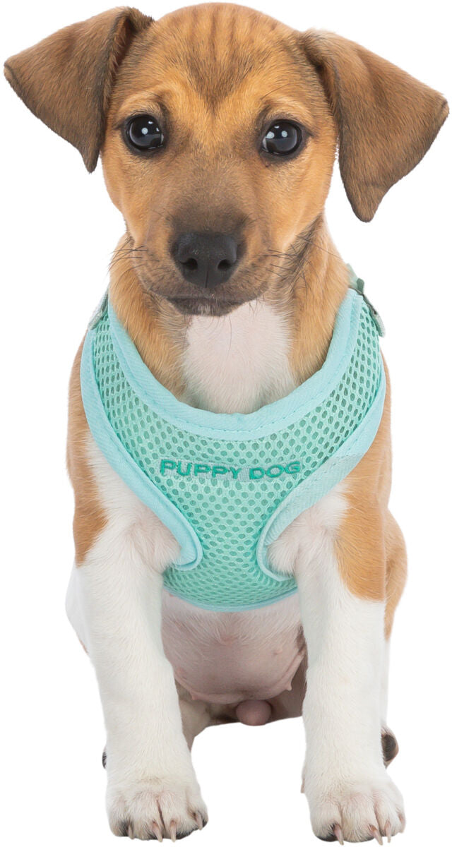 Das Geschirr wird einfach über den Kopf des Welpen gezogen und mit dem verstellbaren Bauchgurt angepasst. Es eignet sich hervorragend für das Training der Leinenführigkeit bei Welpen und sorgt für sicheren Halt ohne Druck auf den Halsbereich.