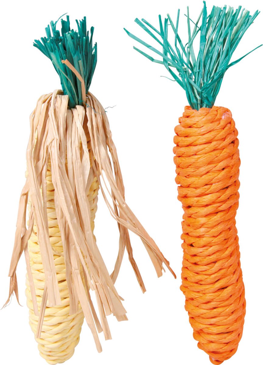Trixie – Karotte & Maiskolben, Stroh-Gemüse, 15 cm, 2 Stk.: Knabberspass & Beschäftigung für Kleinsäuger Das Set aus Stroh-Karotte und...