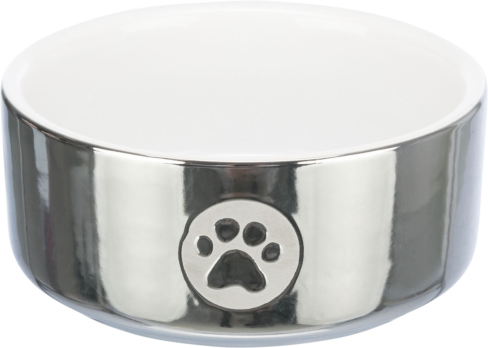 Beschreibung Trixie – Keramiknapf mit Motiv, silber/weiss: Stylischer Napf für Hunde und Katzen