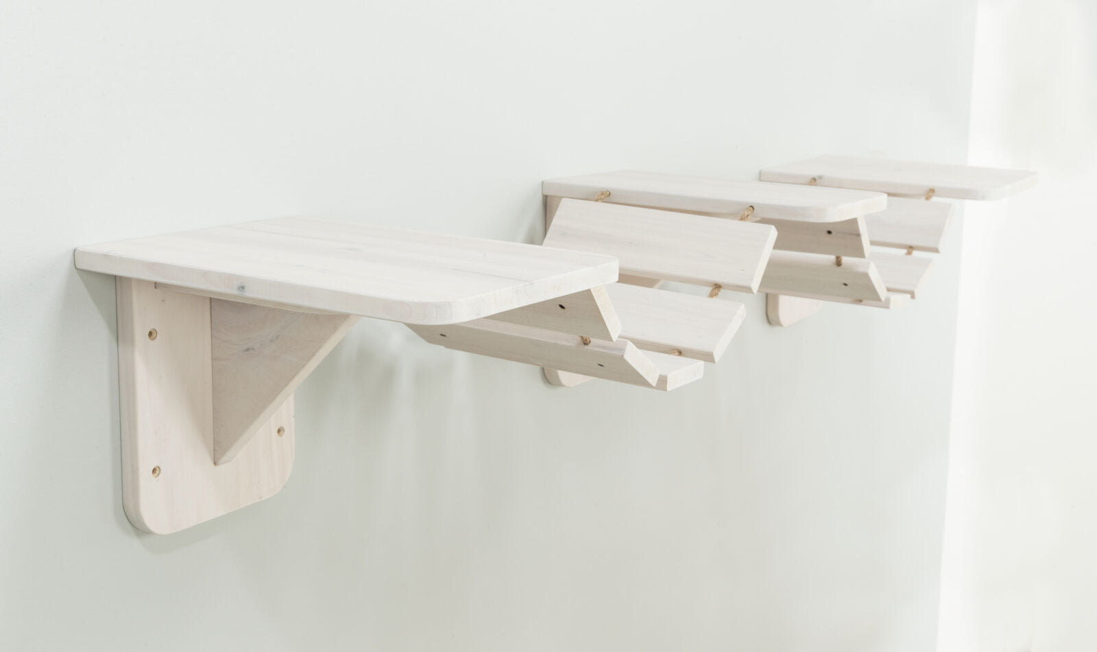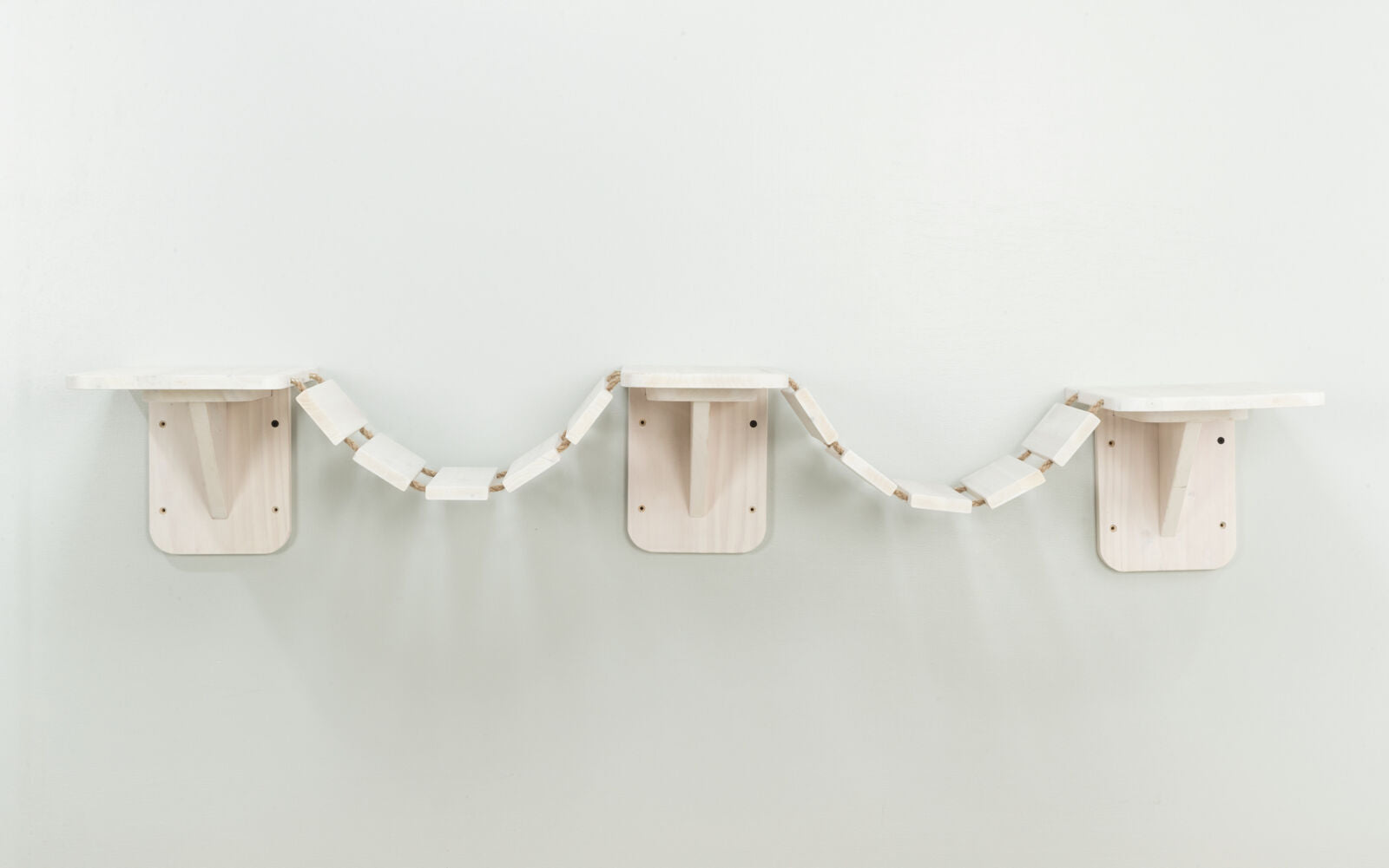 Die Kletterleiter wird an der Wand befestigt und eignet sich ideal als Teil einer Kletterlandschaft oder einzeln zur Erweiterung des Wohnraums. Sie bietet Katzen sichere Aufstiegsmöglichkeiten und lädt zum Beobachten, Spielen und Ausruhen ein.