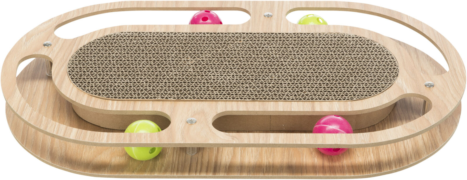 Beschreibung Trixie Kratzpappe mit Spielzeug und Katzenminze Holz – Krallenpflege & Spielspass