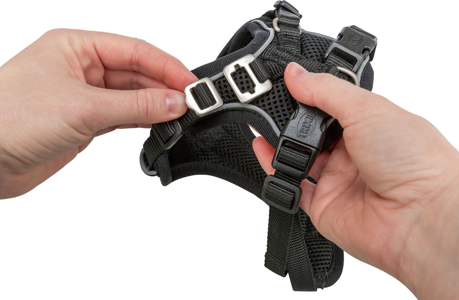 Trixie - Premium FlexMesh Geschirr, wide fit, schwarz