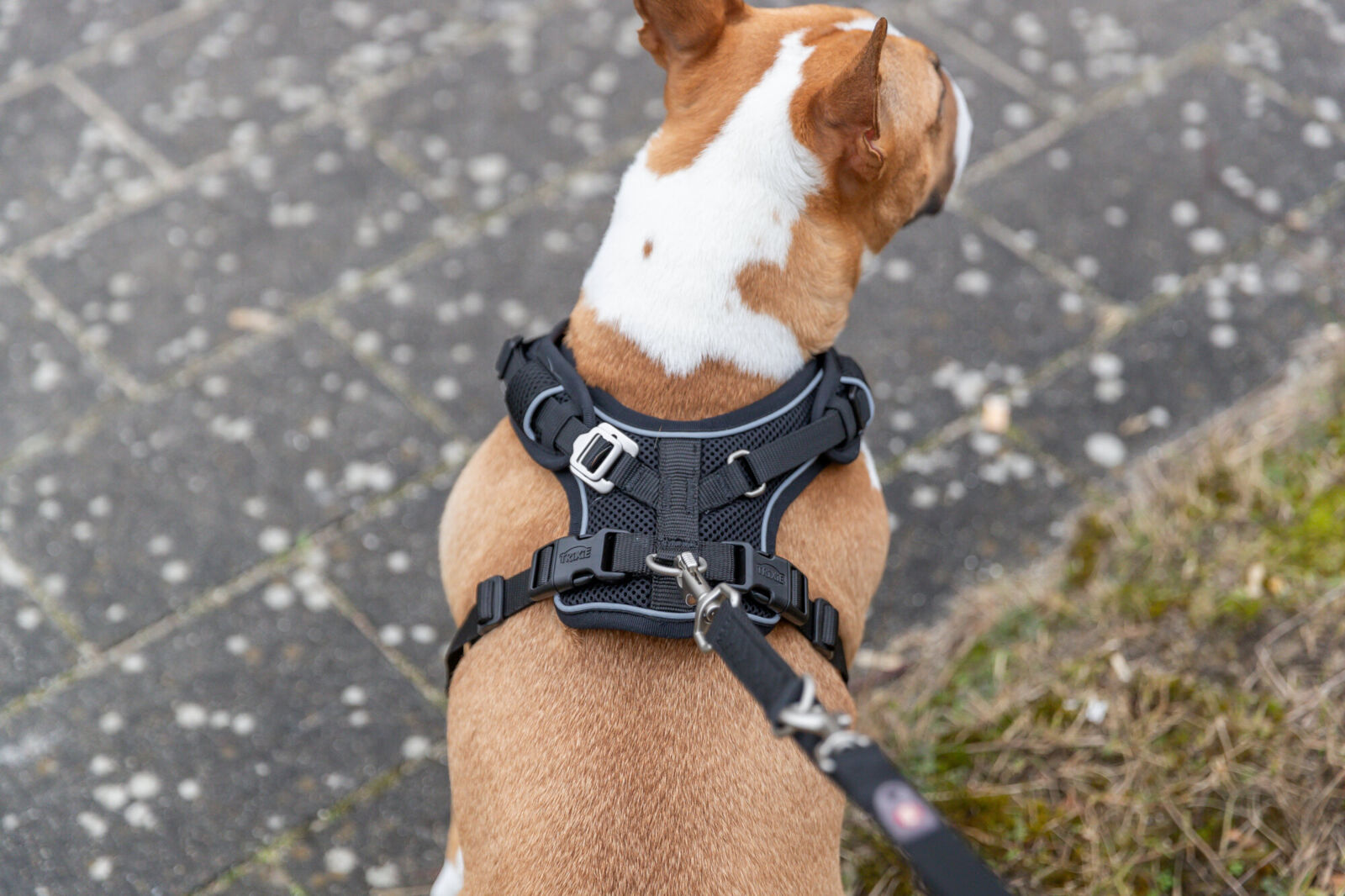 Beschreibung Trixie Premium FlexMesh Geschirr, wide fit, schwarz: Komfortables Geschirr für kompakte Hunde