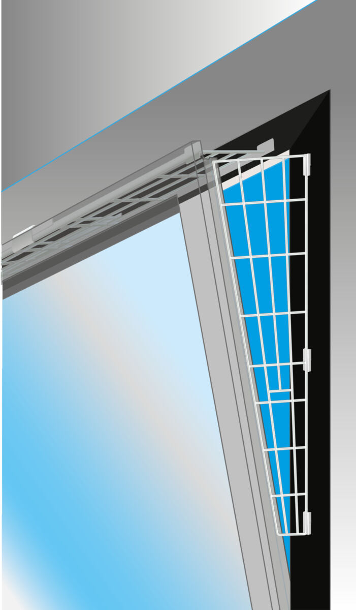 Das Gitter am Seitenteil des Fensters befestigen. Regelmässig auf festen Sitz prüfen, um die Sicherheit der Katze dauerhaft zu gewährleisten.