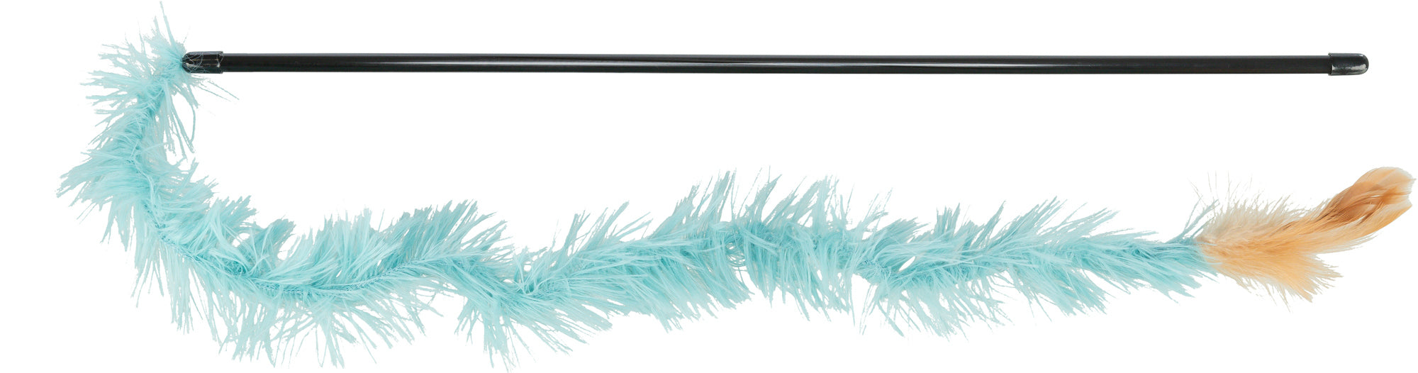 Angel am Griff halten und das Plüschband in abwechslungsreichen Bewegungen führen, um Beuteverhalten zu imitieren und die Katze zu aktivieren.