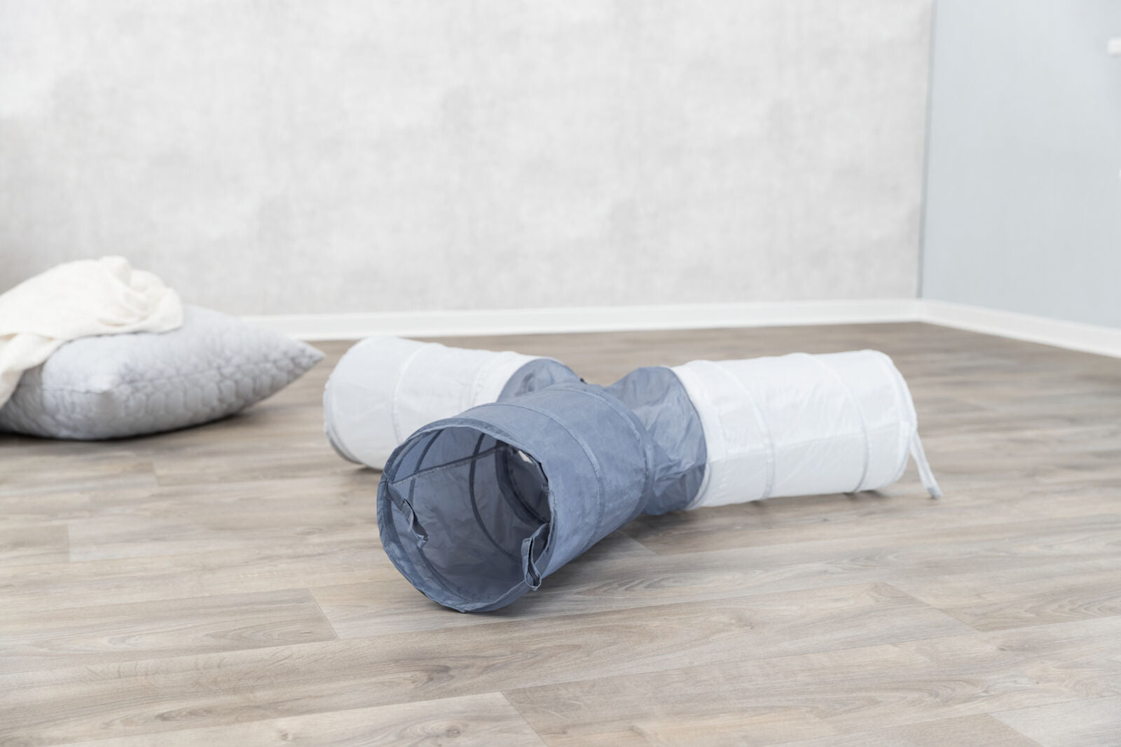 Der Spieltunnel wird im Wohnraum aufgestellt und dient als abwechslungsreicher Spiel- und Versteckplatz für Katzen. Für längere Haltbarkeit regelmäßig reinigen.