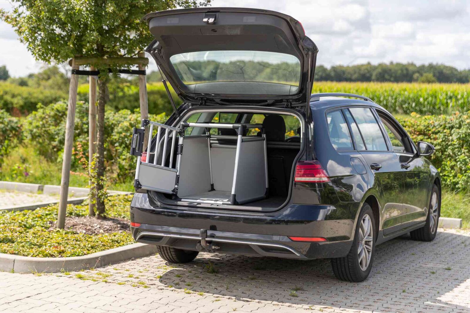 Im Fahrzeug platzieren und vor Fahrtantritt sicher fixieren. Vor jeder Nutzung auf Stabilität und Verschlussmechanismen prüfen.