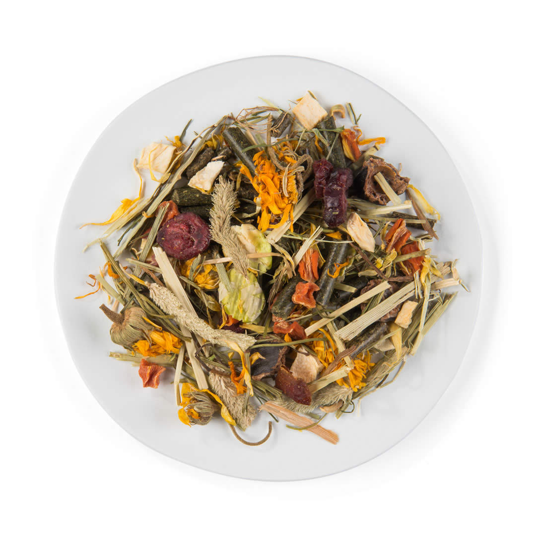 Ausgewählte, leicht verdauliche Körner und Pflanzenfasern, abgestimmt auf sensible Kaninchen.